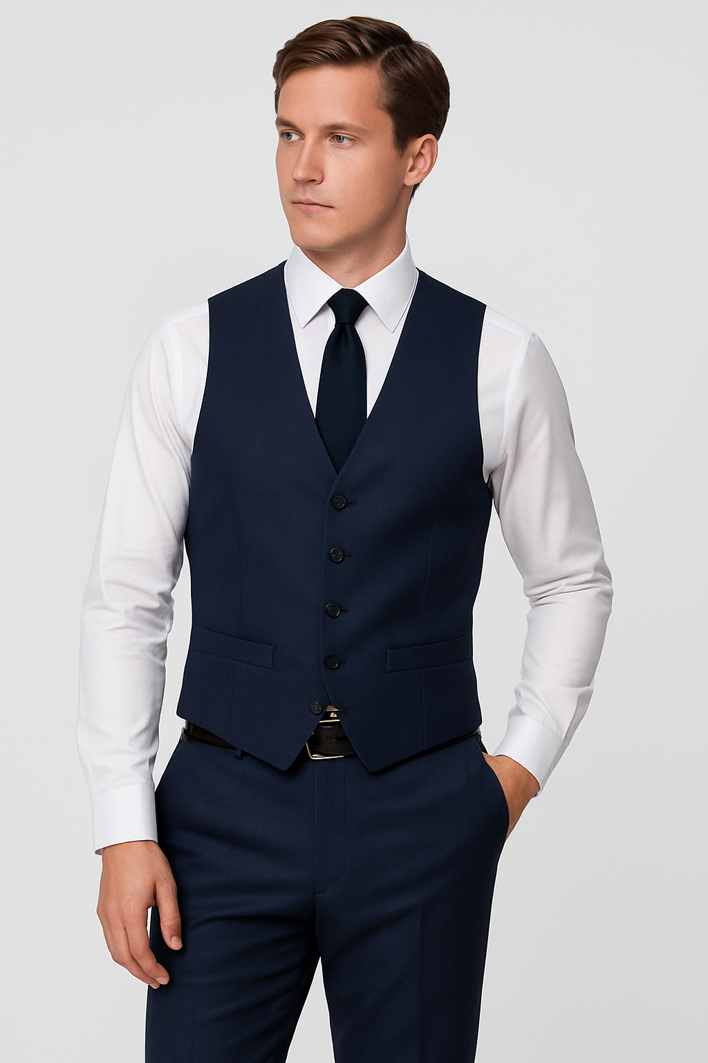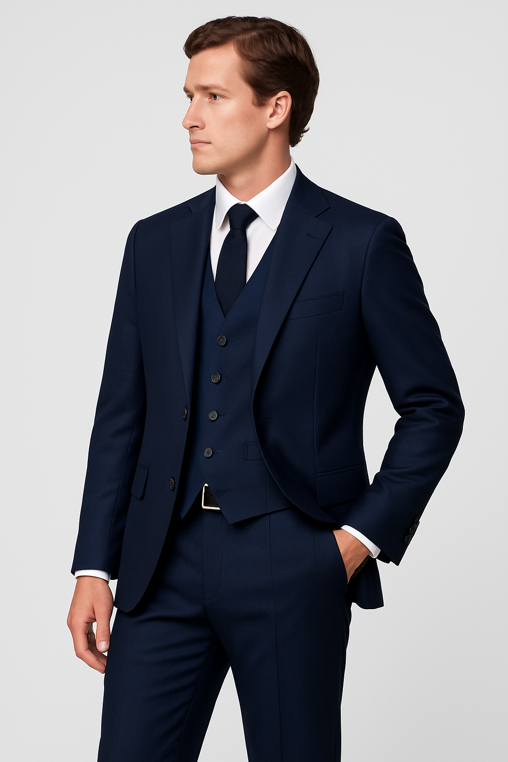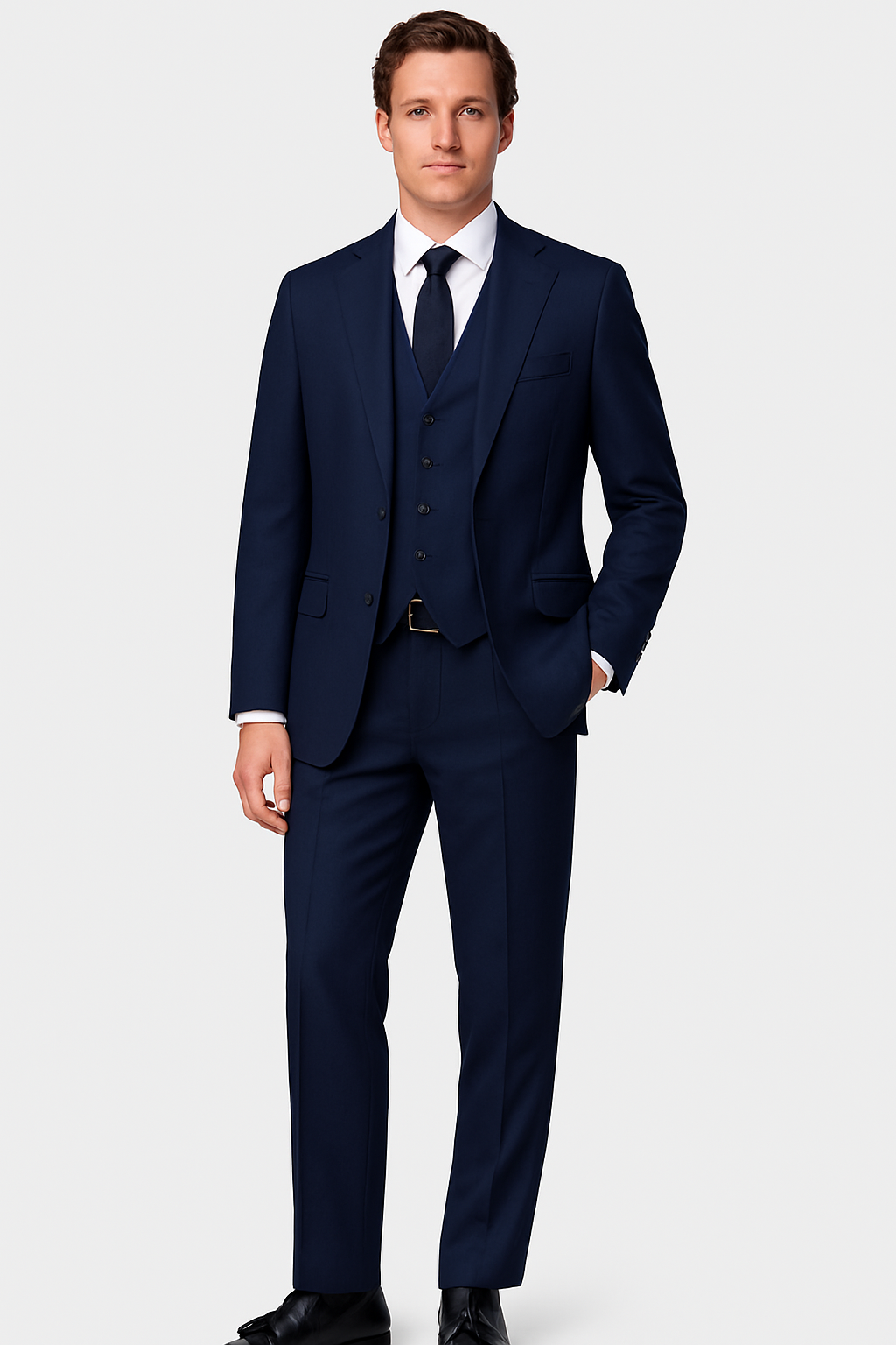Sleek and seasonless, the Navy Blue Three-Piece Suit is a closet essential with an elevated twist. Cut in a breathable TR blend and equipped with relaxed armholes for comfort-driven wear, it keeps you sharp without the stiffness. Ideal for office presentations, evening functions, or special occasions, the navy blue hue delivers professionalism with depth. The three-piece styling allows you to dress it up or keep it classic, depending on the moment. It’s the smarter way to do formal.